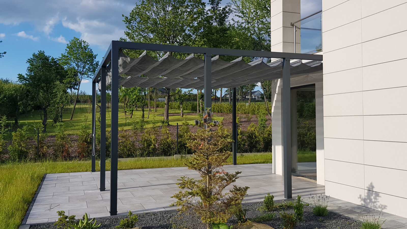 UWAGA: Pergola nie zawiera rolety poziomej rzymskiej. Należy/można ją dokupić opcjonalnie, w zależności od preferencji kolorystycznych oraz wybranego rozmiaru.